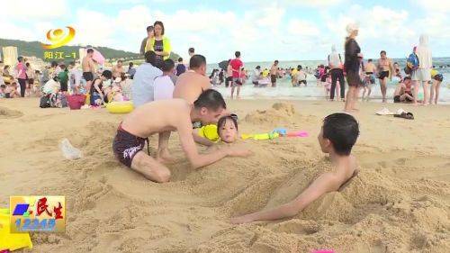 海陵试验区融媒体中心记者 曾楚瑶:我现在是在大角湾旅游景区海上乐园,今天虽然不是周末,但随着暑假的到来,来海陵岛的游客比较多,在我身后可以看到,有很多家长带着小孩在海水里嬉戏打闹,玩得不亦乐乎。