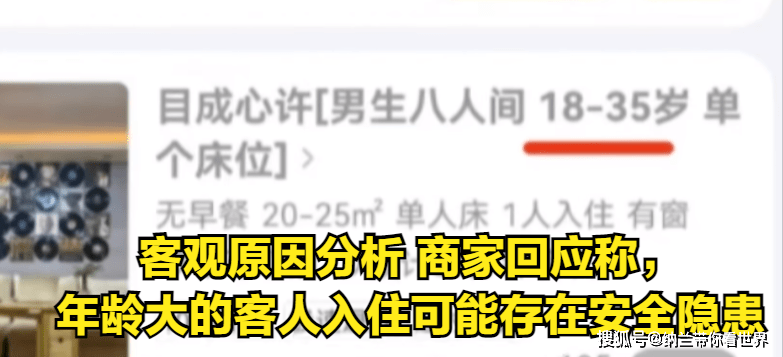 - 客观原因分析 商家回应称,年龄大的客人入住可能存在安全隐患,特别是使用上下床时更容易发生意外。这一解释看