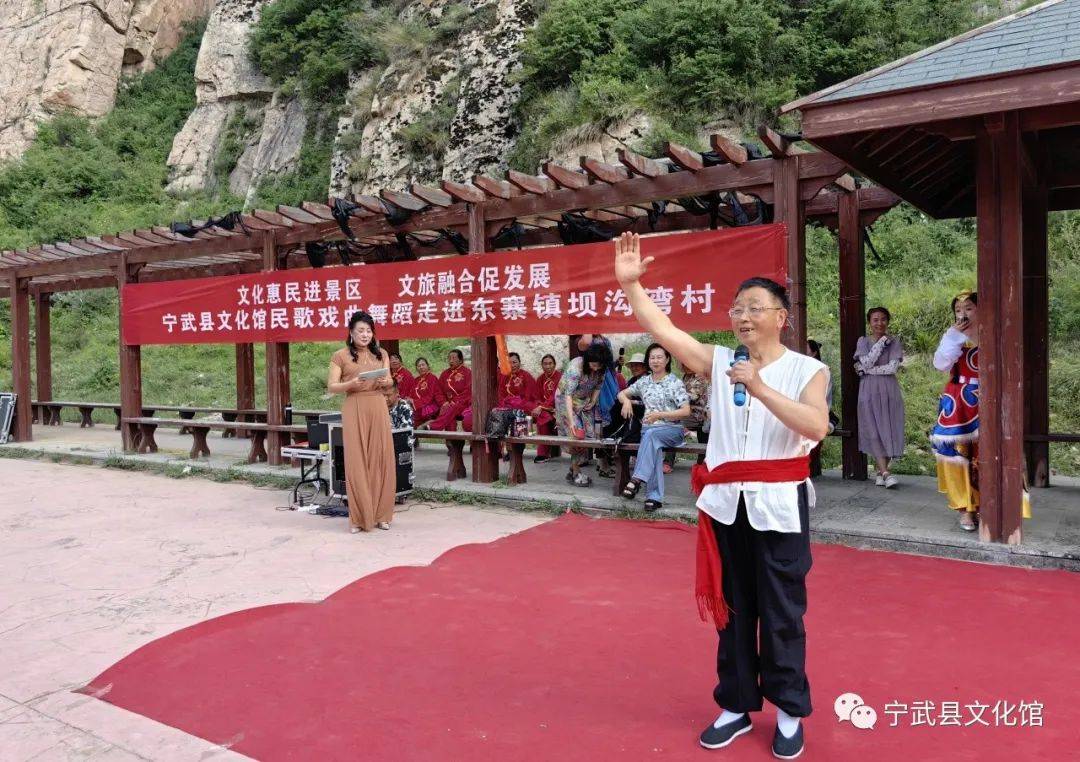 7月8日下午,宁武县“文化惠民进景区,文旅融合促发展”活动走进东寨镇坝沟湾村,本次活动由宁武县文化馆组织开展,旨在进一步丰富我县涉旅乡村群众文化生活和景区文化内涵,实现以文促旅、以旅彰文,全面提升旅游景区吸引力,更好满足游客需求,不断提升广大群众和游客的获得感和幸福感,助推我县文化旅游高质量发展。
