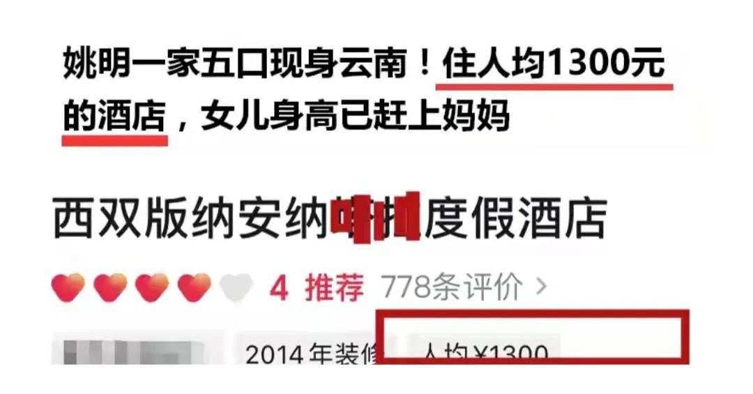第三,姚明一家五口下榻的酒店,据说1300元/人,跟很多网红动不动就住几千块酒店的消费差距甚远。