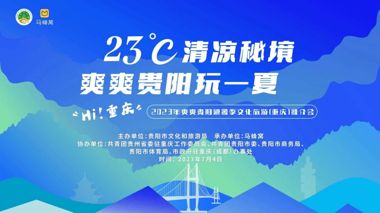 7月11日, 由贵阳市文化和旅游局主办、马蜂窝承办的2023年爽爽贵阳避暑季文化旅游推介会来到地处“高温圈”的重庆,在展现贵阳丰富的文旅资源与避暑新玩法的同时向重庆人民发出23℃的清凉邀约。