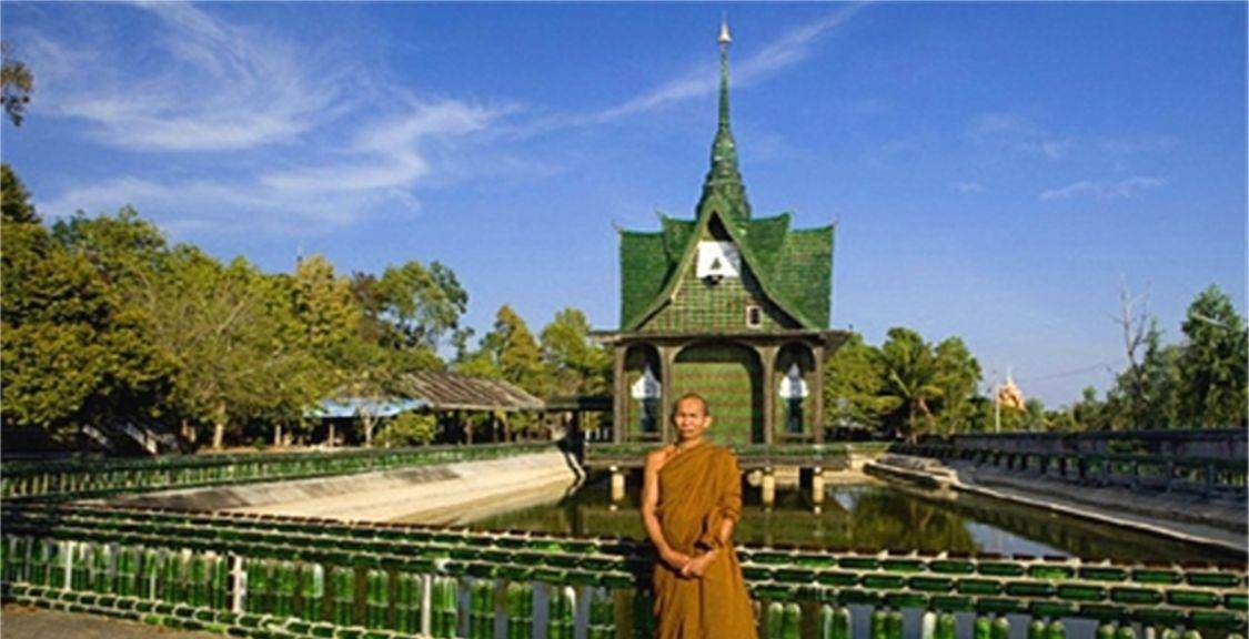 世界各地的人们常会为如何更好地利用旧物绞尽脑汁,生活在国外东北部的一群僧人在这方面独辟蹊径。使用了大约150万个旧啤酒瓶搭建起了一座环保寺庙。这座寺院里的僧人从1984年起就开始收集酒瓶。在拿到了将近100万个酒瓶后,他们便着手兴建新的宝塔和寺庙。
