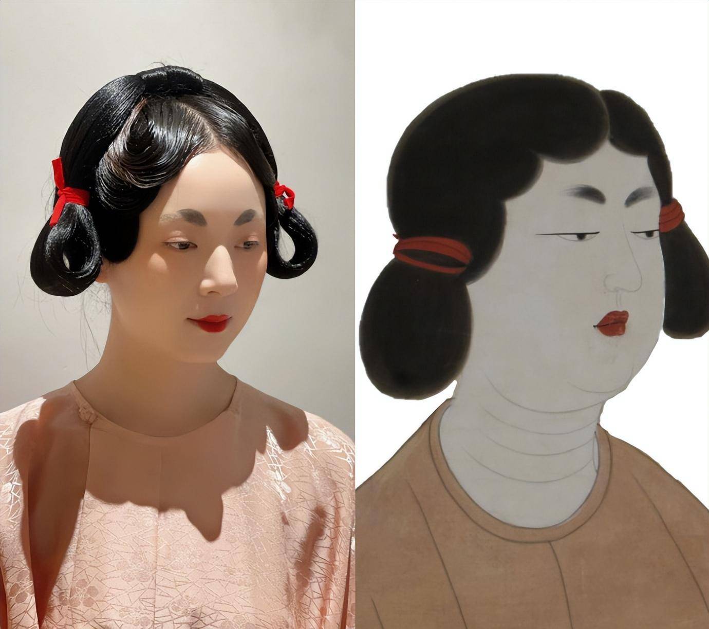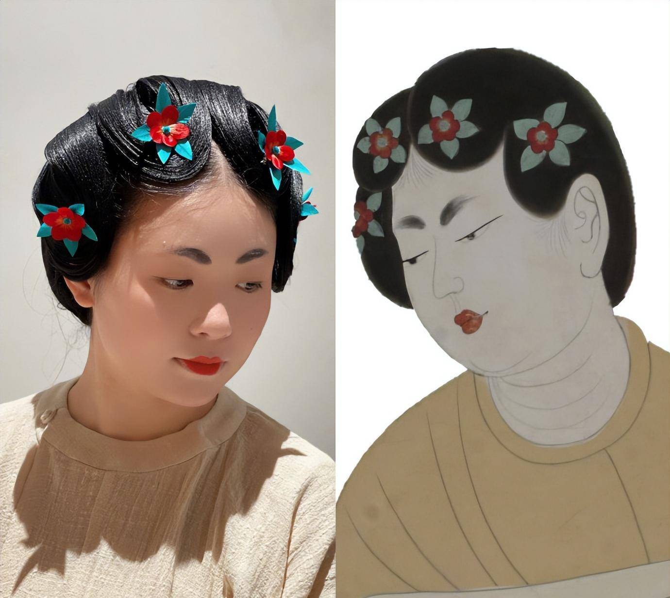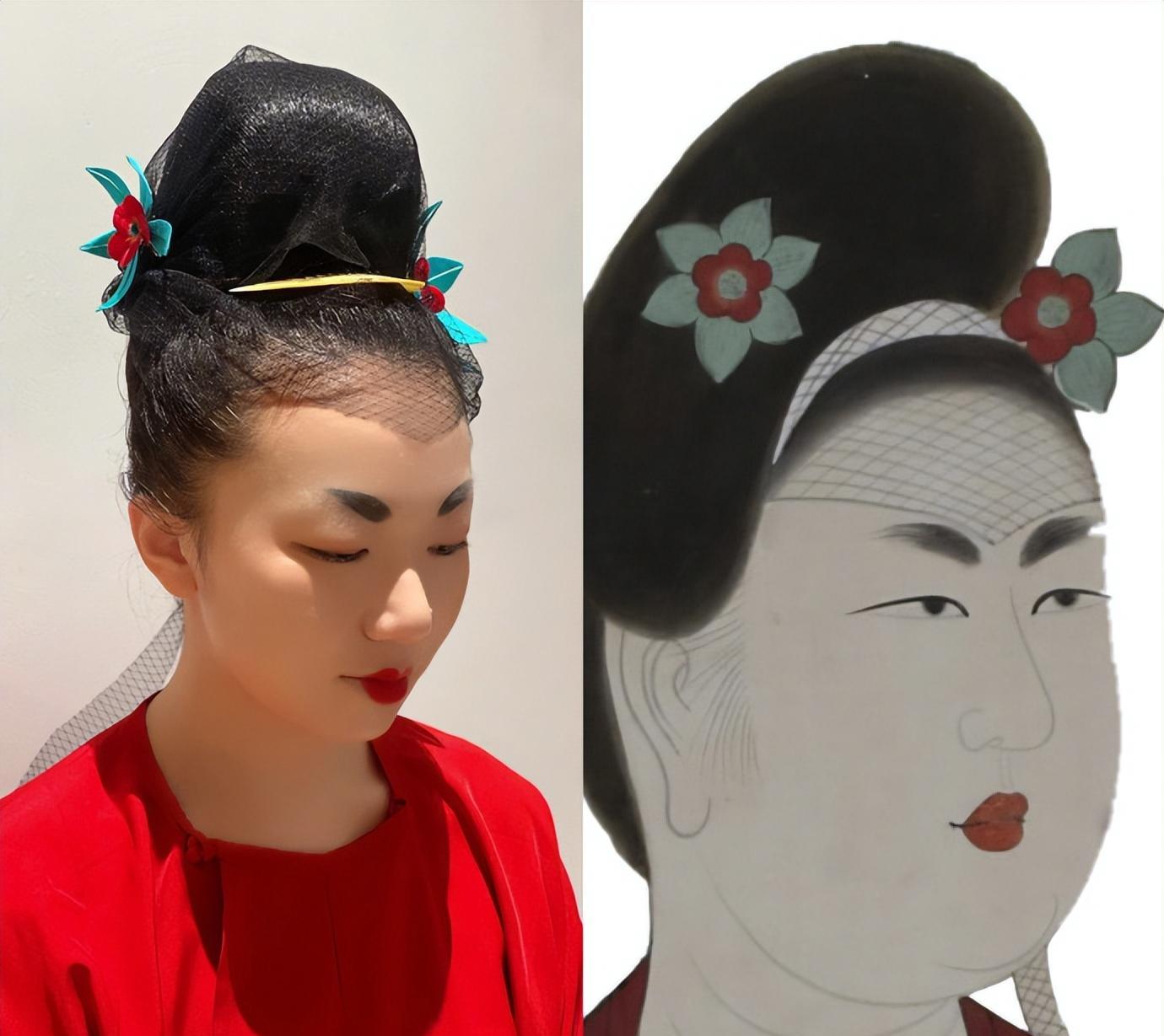 一是因为图片毕竟需要艺术处理,而现实中可能并非如此。二是壁画中人物的脸型与现实中的人有很大差异,所以我们只需模仿一般的造型和配饰即可。至于发包的大小和布局,还是要看化妆师的审美。
