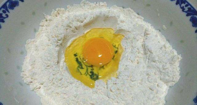 鸡蛋打撒到碗中,加入炸粉搅拌成糊状,再倒入切好的猪粉肠和食盐、鸡精搅拌均匀。