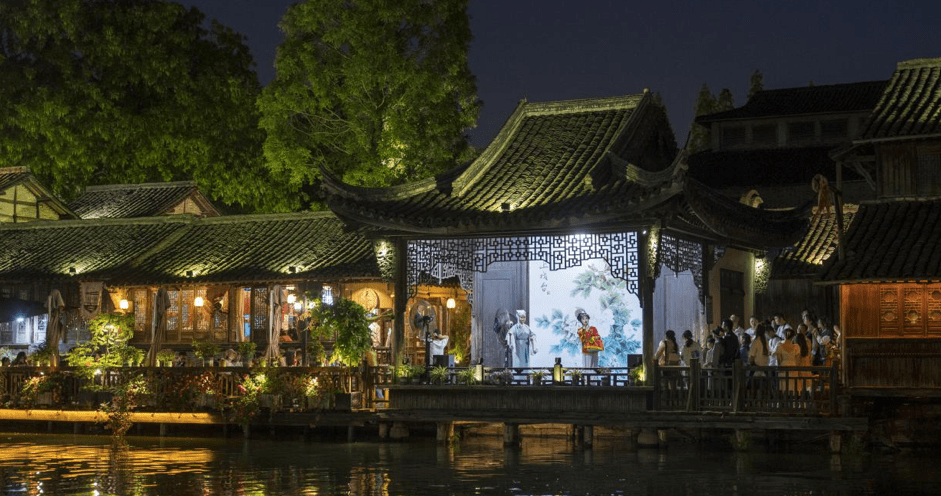 此外,景区在堤上度假酒店附近推出微醺艺术市集;乌镇水上夜集汇聚鱼丽之宴、瓦烧、盖碗茶等江南美食以及花鼓戏、皮影戏、评弹等活动。
