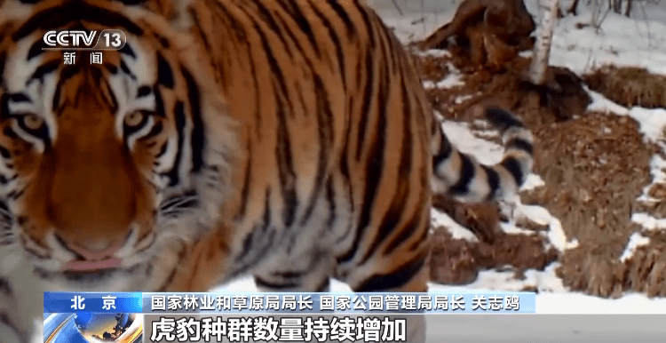 国家林业和草原局局长国家公园管理局局长关志鸥:东北虎豹国家公园建立了集保护、监测、科研于一体的保护机制,虎豹种群数量持续增加。截至目前,野生东北虎的数量已经超过50只,野生东北豹的数量超过了60只。