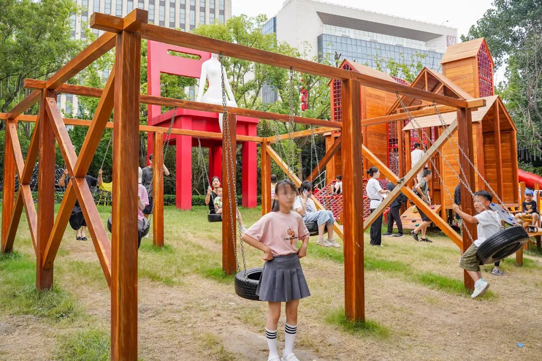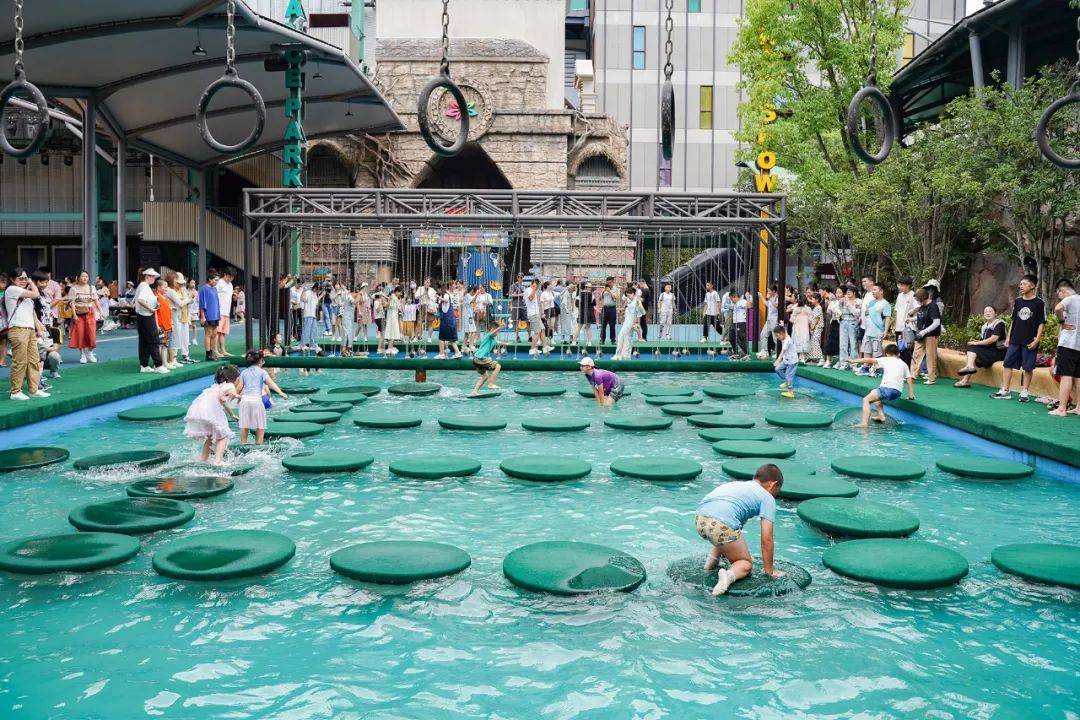 带娃的话,还可以到锅庄广场附近的童玩项目玩,诸如滑滑梯、水上拓展、恐龙骑行、丛林迷宫等等。衣服湿了也不要紧,有免费烘干机使用。