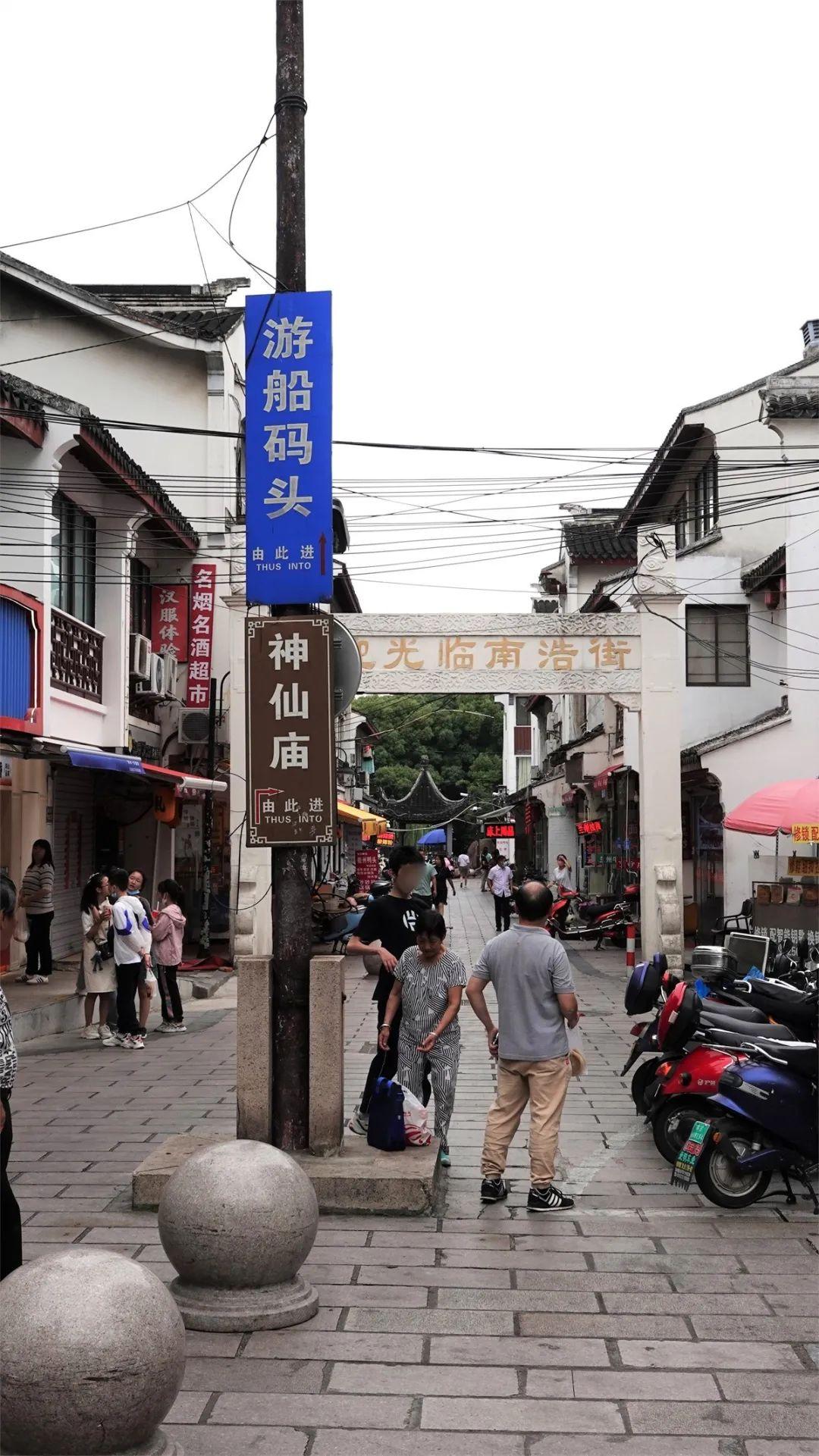 南浩街,街上的饮食店开开关关,也是每年轧神仙的会场之一,人挤人,热闹非凡。