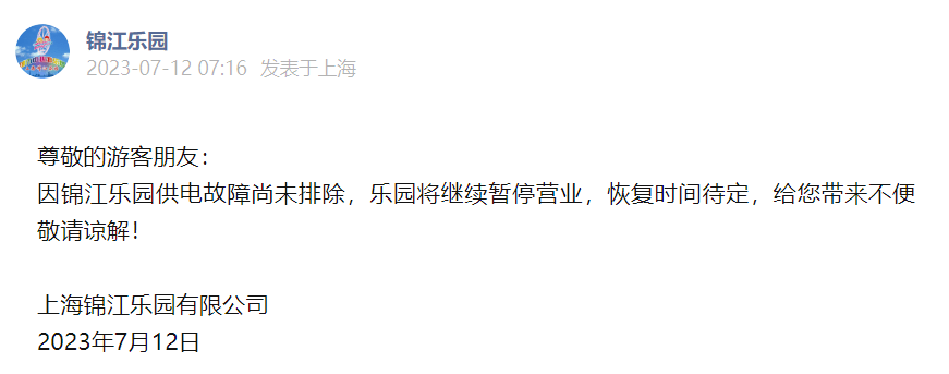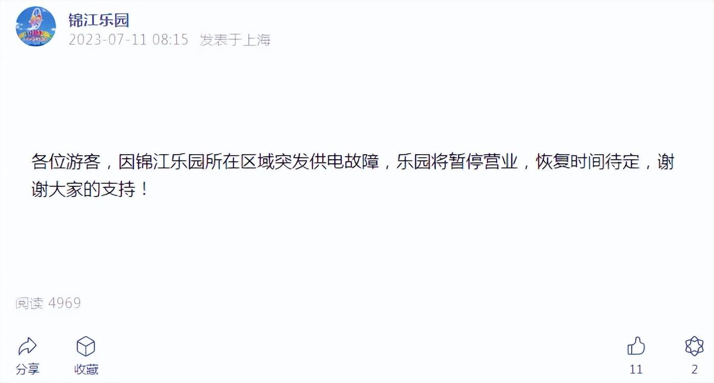 突发!上海锦江乐园临时闭园,供电故障正在抢修中