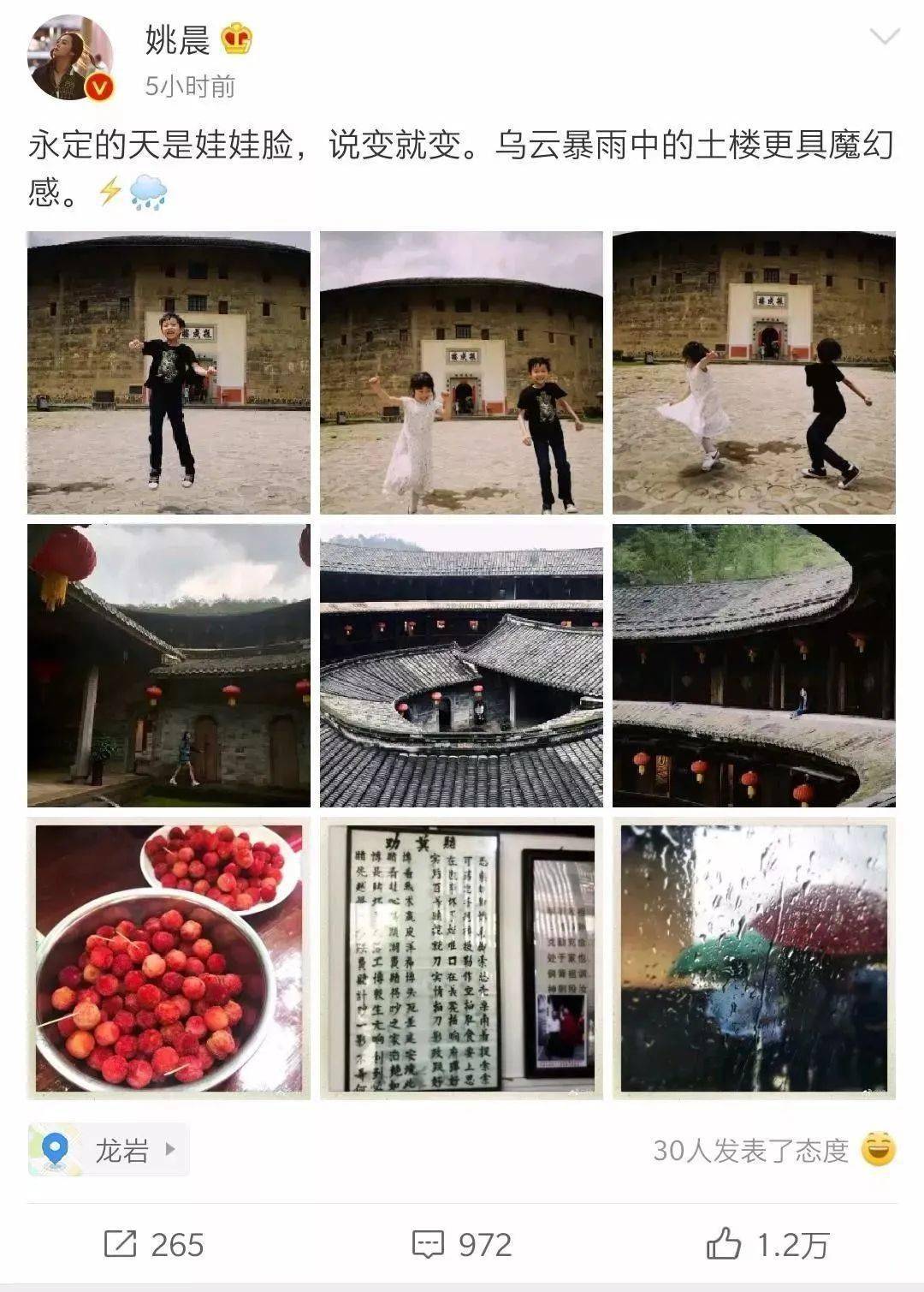 姚晨作为福建旅游形象大使,在永定土楼 为《福建如你》拍摄MV