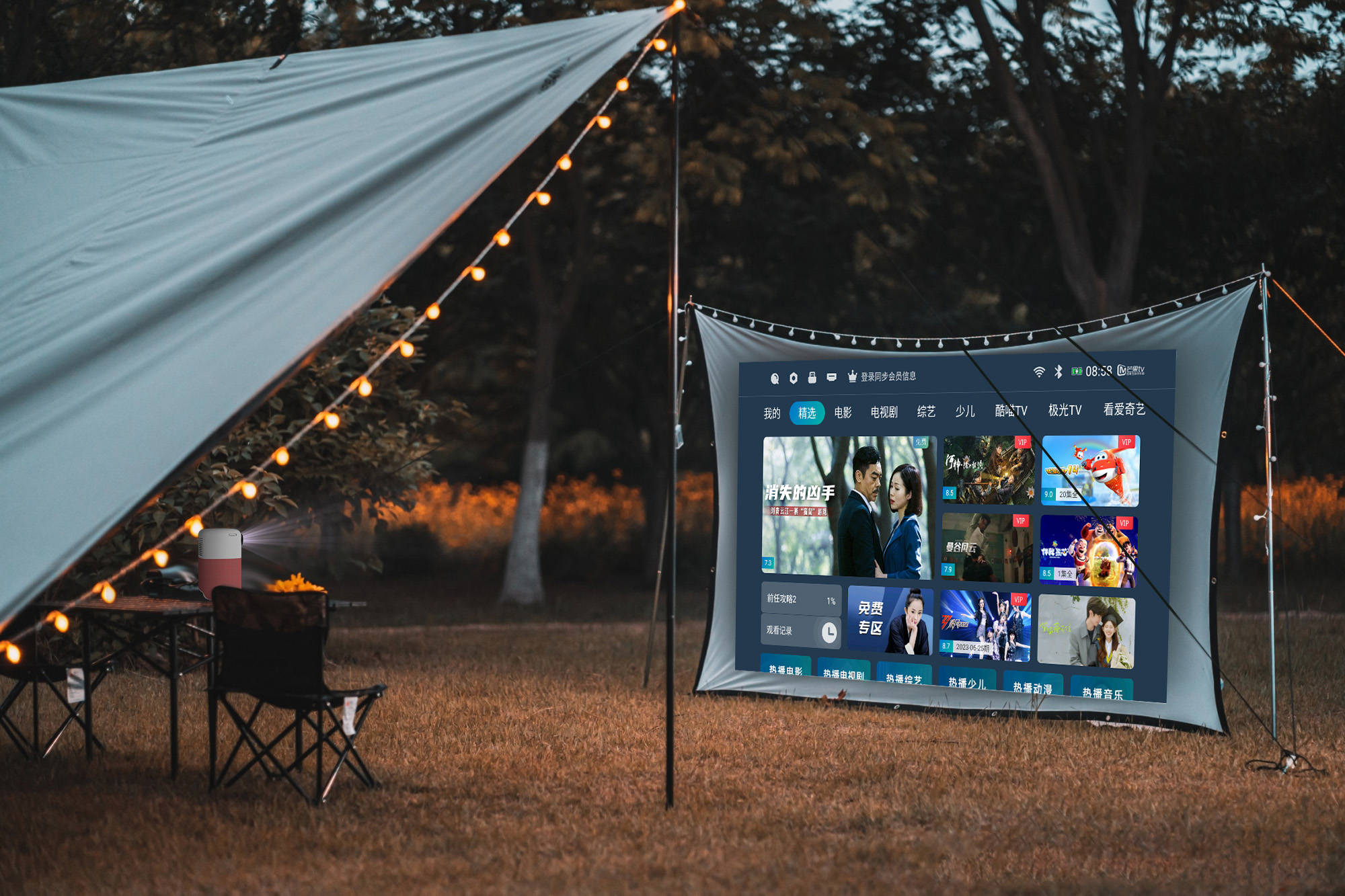 夜幕降临,繁星点点,我们搭起了帐篷,点燃了篝火。在这温暖的光芒中,我们围坐在一起,分享彼此的故事和心情。此时的投影仪还静静地躺在背包里,它的存在仿佛是一种秘密武器,让我们的夜晚更加丰富多彩。