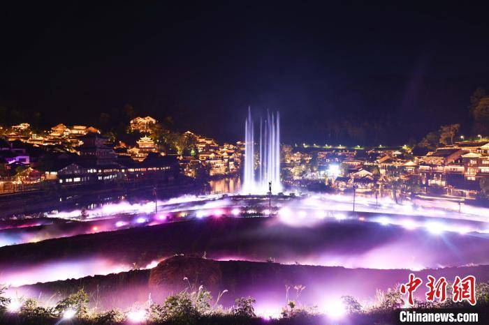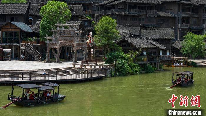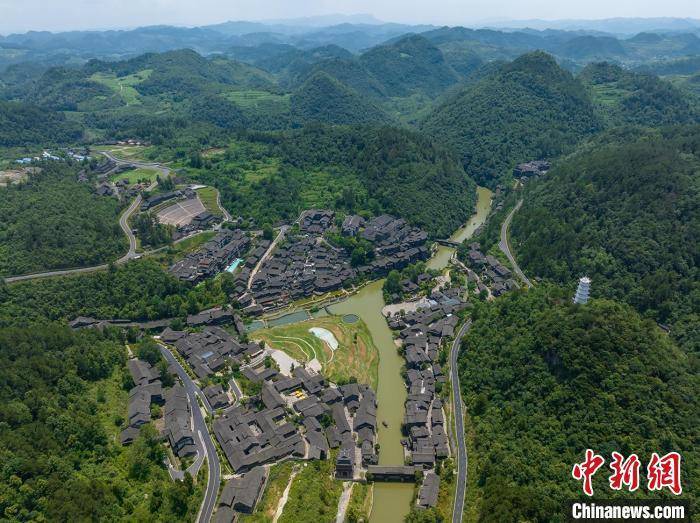 位于贵州省遵义市播州区的乌江寨景区群峰环绕,一座座黔北民居错落有致地分布在两旁,呈现出一幅黔北民居群落画卷。夏日,景区还举行“水上芭蕾”独竹漂、音乐水舞秀等活动,吸引许多游客前来游玩赏景。