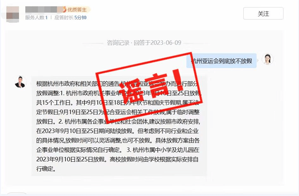 原标题:杭州因举办亚运会9月10日至25日放假?官方回应