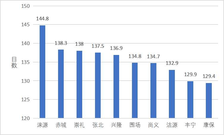 河北省气象服务中心2023年6月25日发布的专项报告显示,涞源夏季(6-8月)平均气温21.4℃,利用1991-2020年河北省三十年气候资料,采用“基于黄金分割法构建人体舒适度”的方法,分析河北省人居环境气候舒适度,其中河北涞源的舒适日数位居榜首——接近150天。
