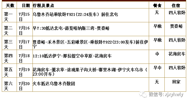 贾登峪-禾木景区-五彩滩景区-乘软卧Y922(2 3:00)前往伊宁 |