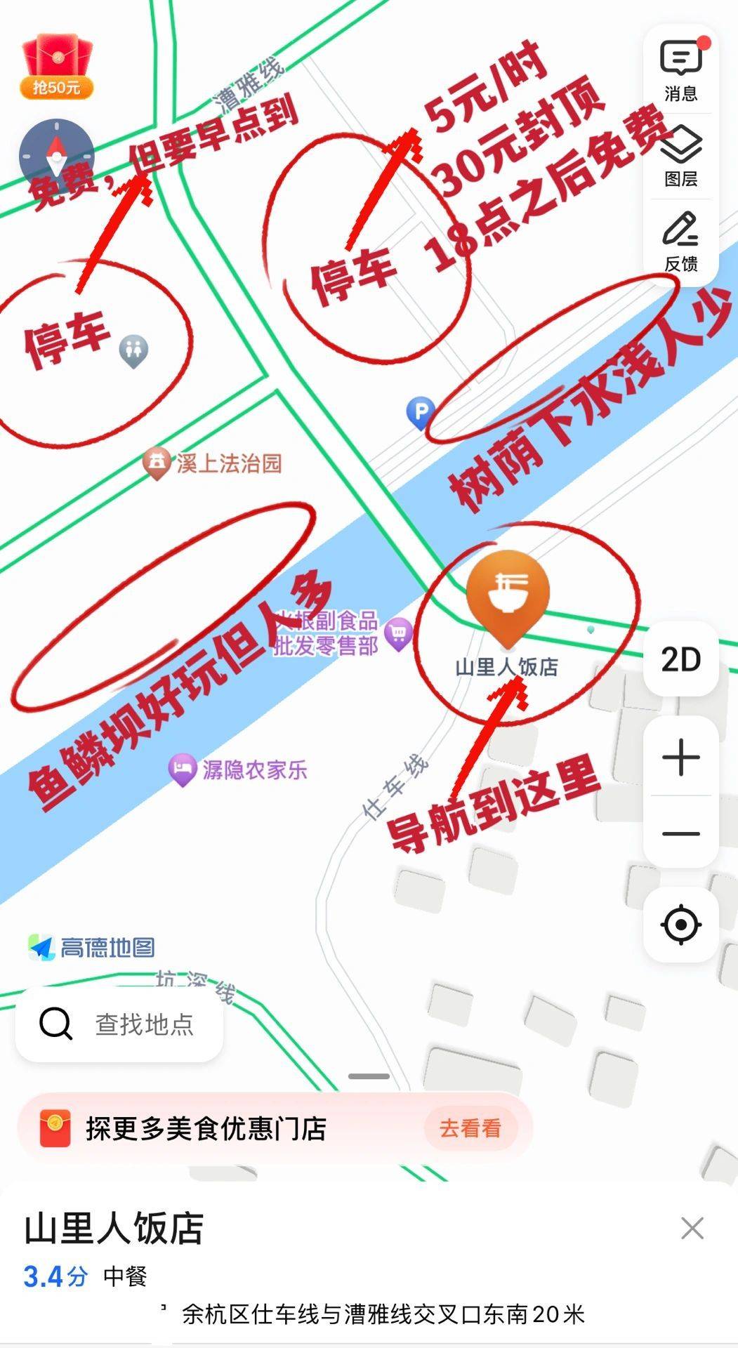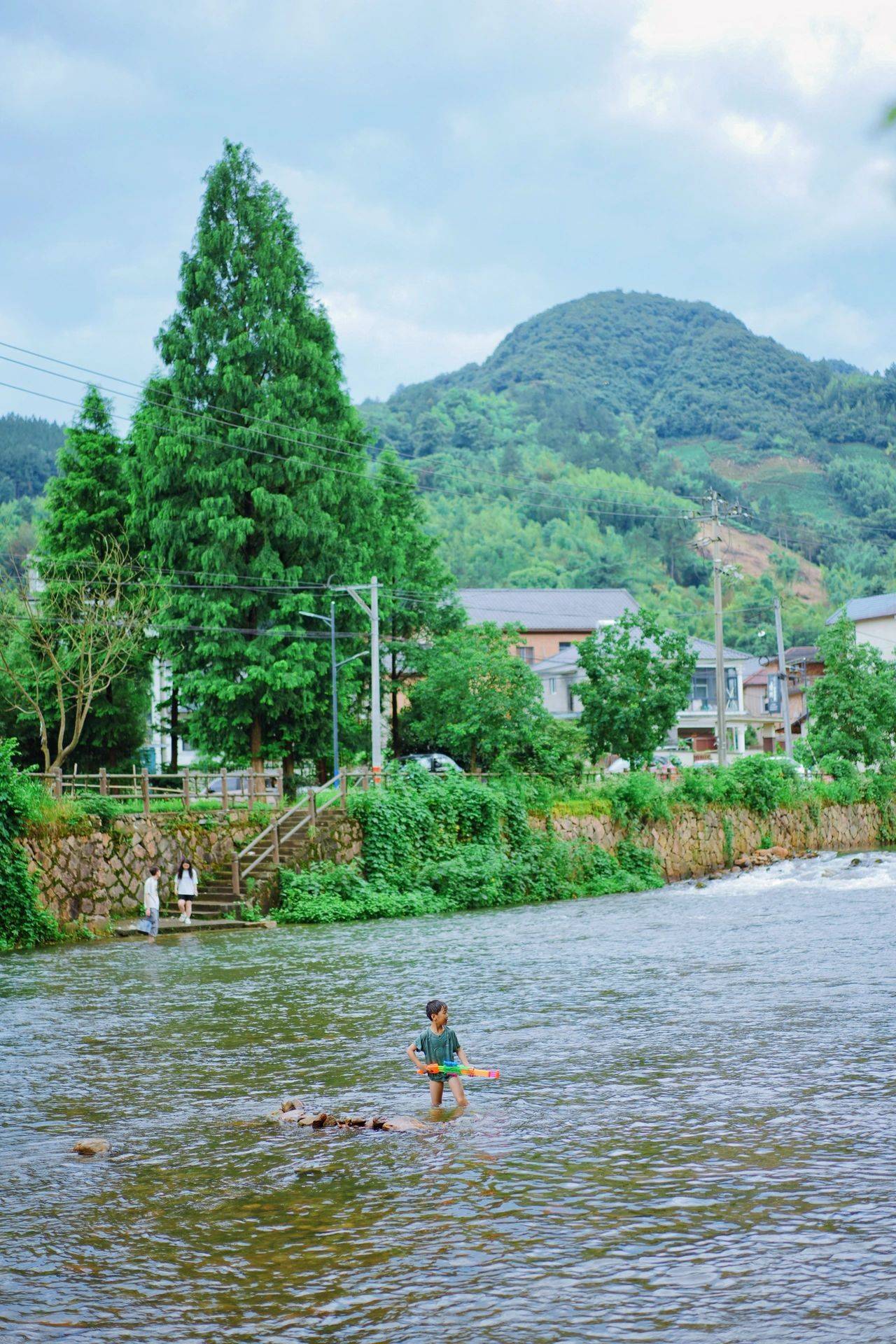 - 玩水区特点:溪水清澈见底,上游是四岭水库,下游是径山花海