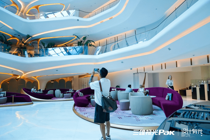 迪拜ME酒店位于Opus综合体内,坐落在迪拜的哈利法塔区。三雄极光照明学院“设计有光·亚洲设计师迪拜对话”游学团入住并进行参观学习,学习建筑设计大师扎哈·哈迪德流畅的建筑性设计语言。