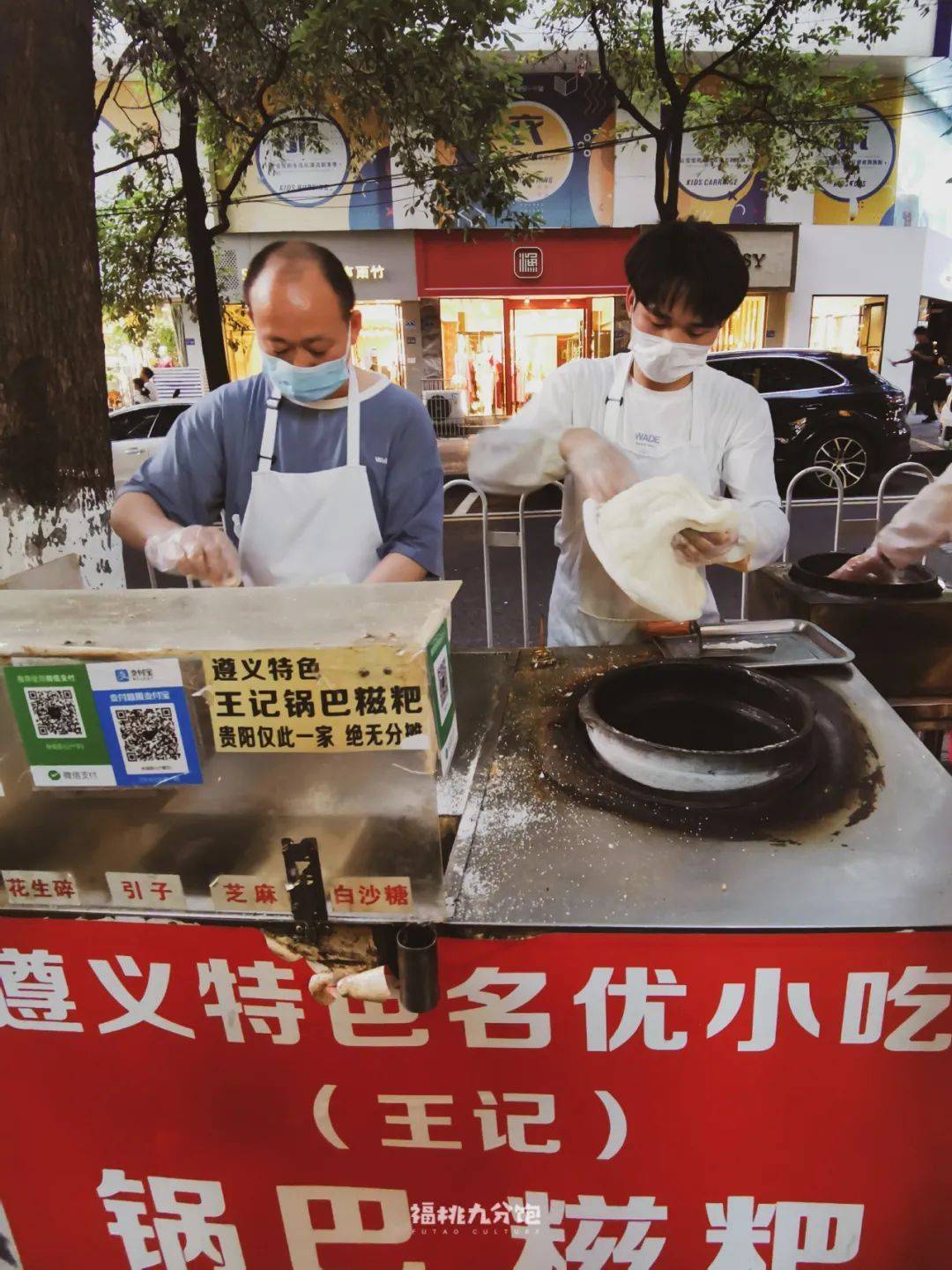 沿着圆通街,走过上上下下的地下通道,就到了贵阳新晋网红民生路,以及,更网红的遵义特色王记锅巴糍粑。