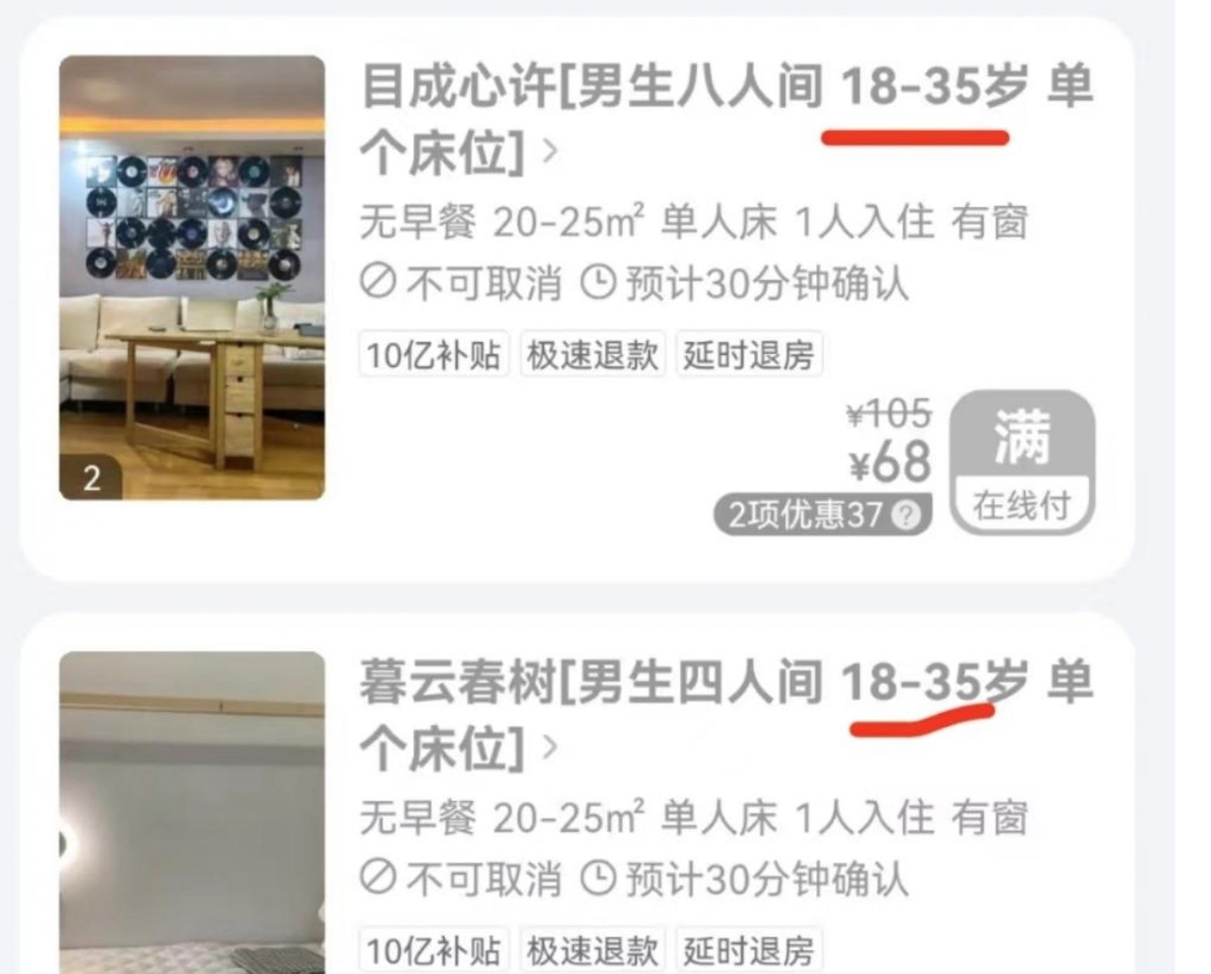 记者在某电商平台进行了查询,发现确实有不少青年旅舍在北京实行35岁及以上的入住年龄限制,也有一些将年龄限制放宽到45岁。