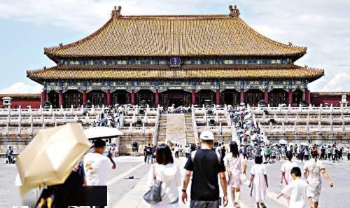 随着暑假来临,北京暑期游逐渐升温,各地游客来到北京参观游览。图为7月8日,游客在故宫参观。新华社