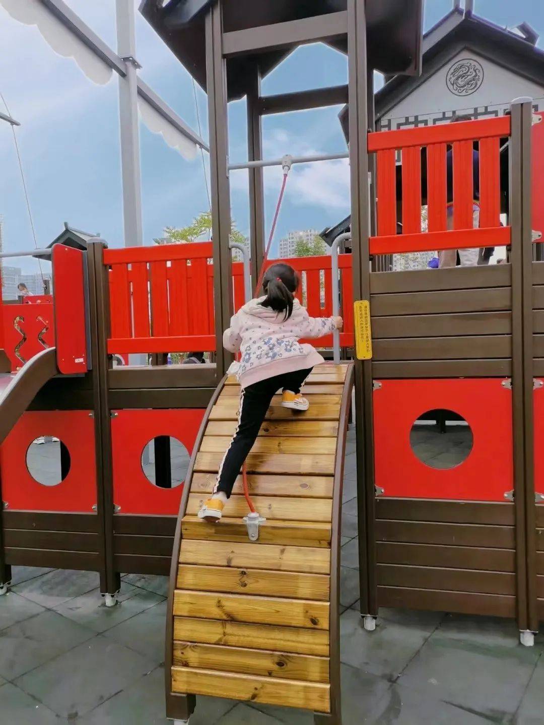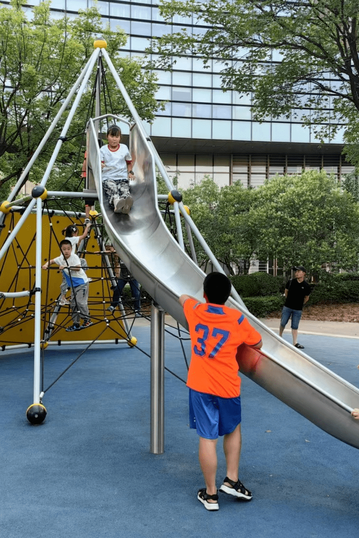 在贵和金街西对面,贵和领秀城东门广场,也有免费供孩子们玩耍的乐园。极具挑战性的滑梯,没有一定的攀爬能力可是玩不了的哦~