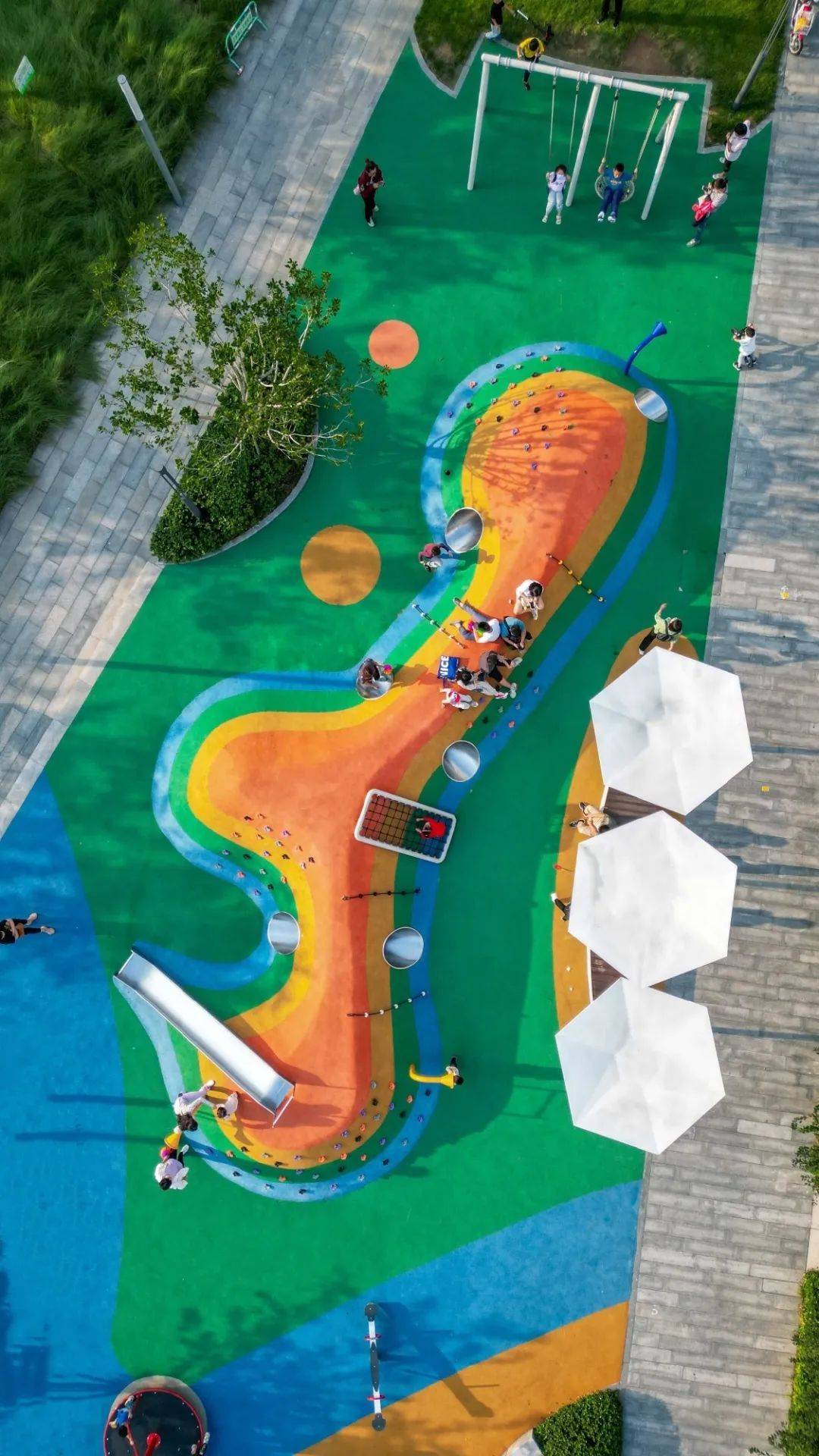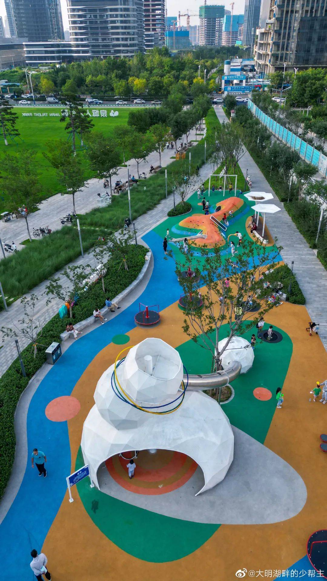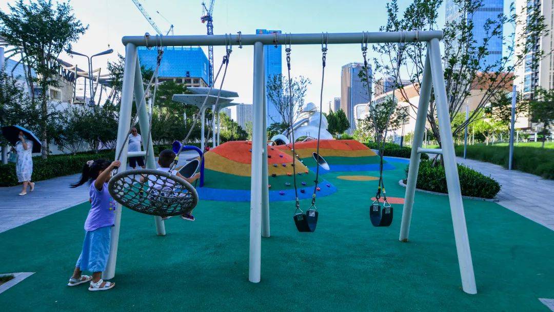 除了绿地,还有孩子们爱玩的乐园。公园里的星空乐园是独属于孩子们的空间。