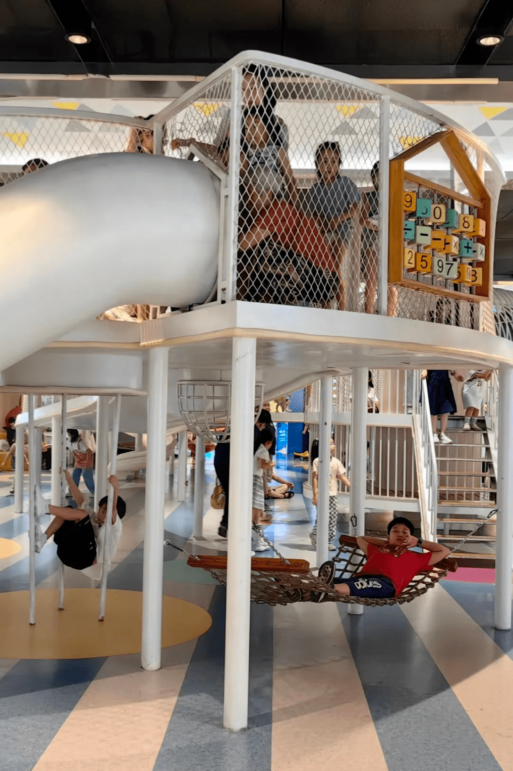 爬上星球,从上滑下的快感对小朋友来说就是百玩不厌的“童年”。(需要注意的是星球滑梯是高滑梯,仅限5岁以上孩子体验。)