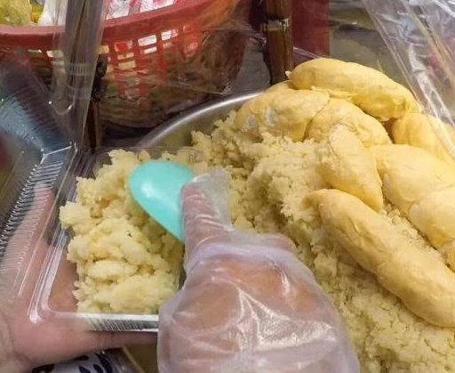 摊主给我装了一盒子的米饭,还给我夹了一大块榴莲肉,还问我一块够不够。我连忙说够了,不过我当时特别疑惑,难道这种榴莲还是自助的,要几块都可以吗?一直到结账时我才发现“套路满满”,虽说是10泰铢一份的榴莲饭,但是结账时摊主总共向我要了80泰铢。她告诉我米饭10泰铢,榴莲肉一块要70泰铢,我当时才恍然大悟,原来又是套路。不过人家都装好了,也只好付了这80泰铢。这80泰铢也相当于我们的13块钱左右了,虽说也不算贵,但是吃着却总觉得不开心。