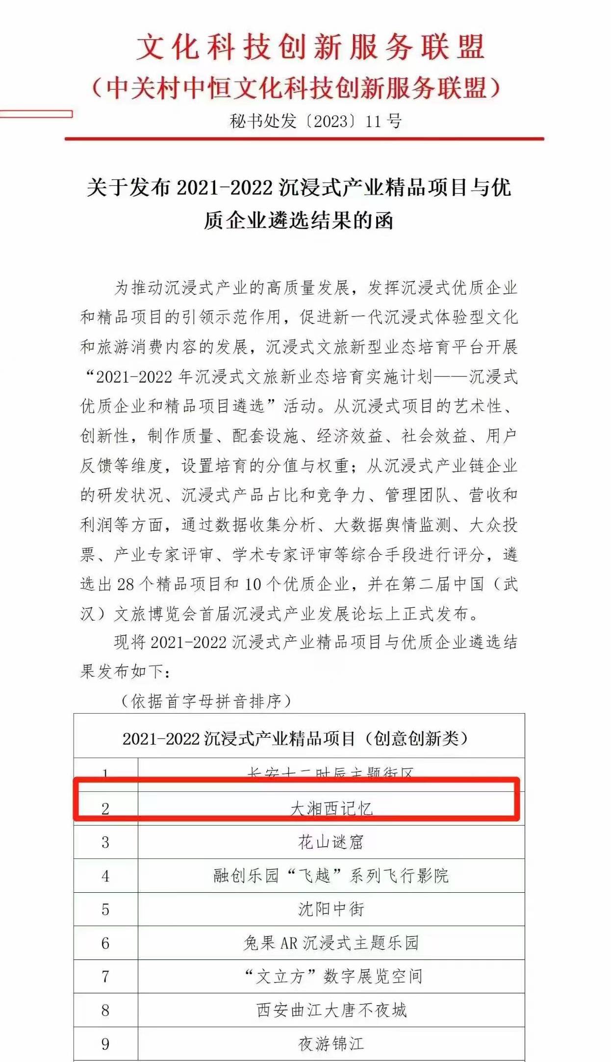 在第二届中国(武汉)文化旅游博览会首届沉浸式产业发展论坛上,全国28个2021-2022沉浸式产业精品项目正式发布,张家界大湘西记忆博览馆作为湖南省唯一的创意创新类项目上榜。
