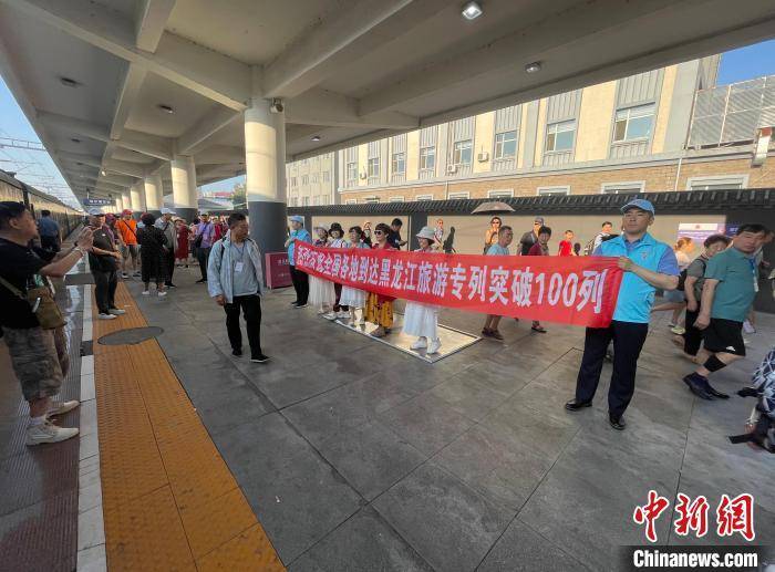 中新网哈尔滨7月12日电 (周晓舟)12日5时30分,Y449次旅游专列顺利抵达素有“冰城夏都”美誉的哈尔滨,来自成都的700余名游客将开启避暑“找北”之旅。今年以来,中国铁路哈尔滨局集团有限公司(以下简称哈尔滨局集团公司)接入中国各地到达黑龙江省旅游专列超过100列,服务和接待各地游客6万余人次,创历史新高。