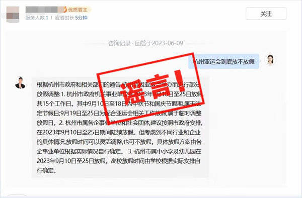 原标题:杭州因举办亚运会9月10日至25日放假?官方辟谣