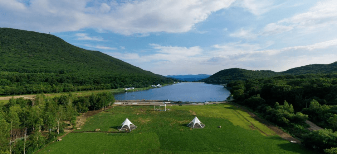 走进桦甸市森林慢谷,广阔的草坪映入眼帘,绿草如茵,丛丛叠叠。老狼沟一潭碧水被四周的青山和盘托出,波光潋滟,好似一块墨绿的翡翠,幽静无瑕。阔大的水面与无边的绿色在视线的尽头相拥,恬静安然,充满诗意。