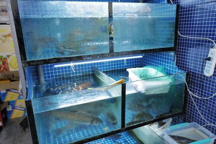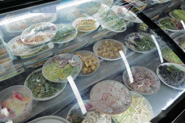 不同于现在大部分店都采用扫码点菜,他们家依旧保持着手写点菜的形式,并且有一面墙专门展示成品菜肴图片,旁边还有透明冷藏柜展示净菜。点菜时,如果你选择困难症犯了的话,可以让服务员为你推荐和介绍菜品。