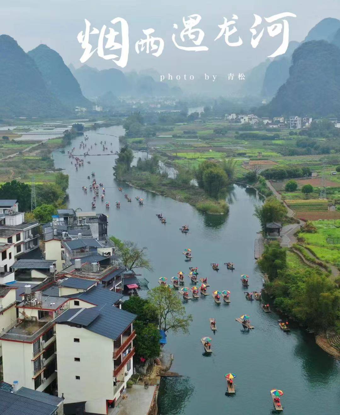 遇龙河有“小漓江”之称,是阳朔山水的精华。遇龙河两岸青山连绵,造型各异,百态千姿;一路翠竹夹道,绿树成行,芳草萋萋;而若遇晴日,则蓝天白云,碧