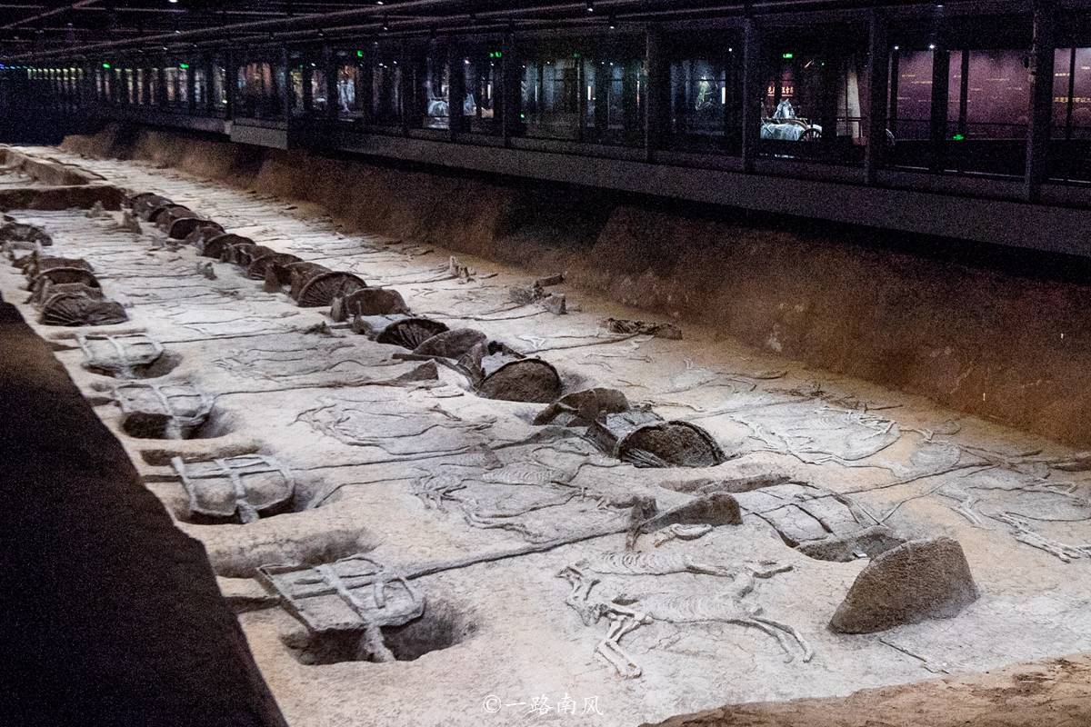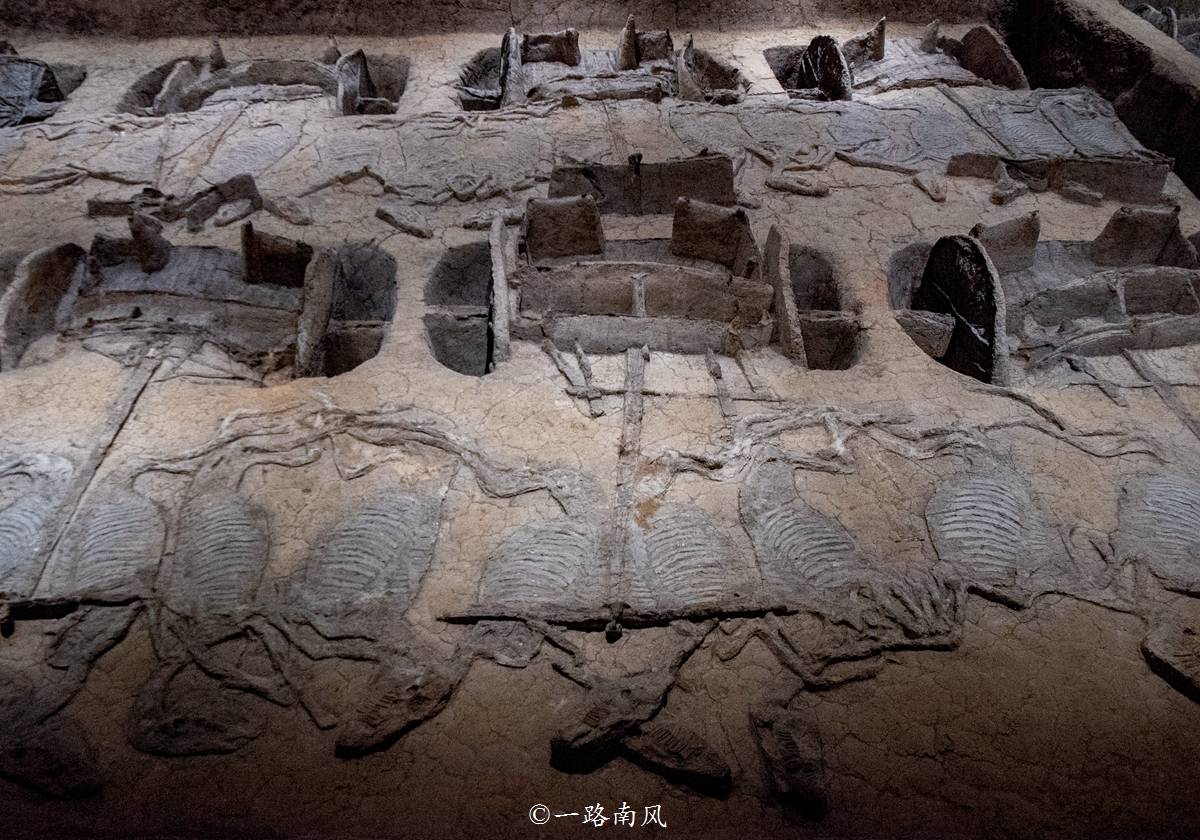 秦王殉葬,用的是俑,楚王殉葬用的是真车真马,以当代人的思想来看,确实有点残忍,但在那个年代却很正常,这种真人真马殉葬的风气到了战国后期才逐渐改变。