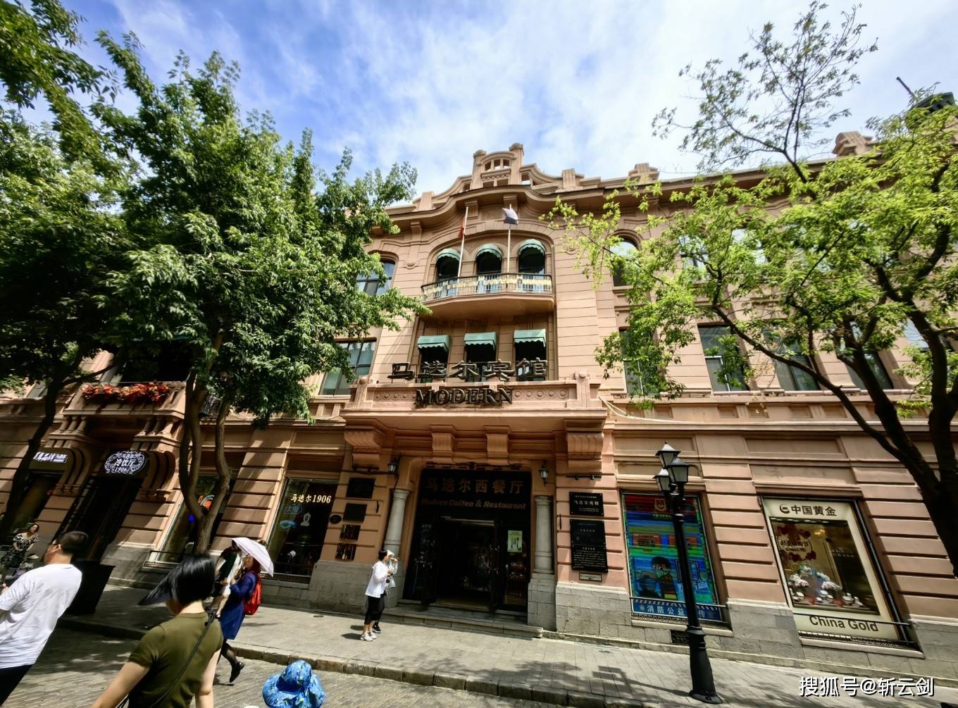 选择住在马迭尔宾馆,观赏中央大街异域风情、松花江畔看日落,索菲亚教堂
