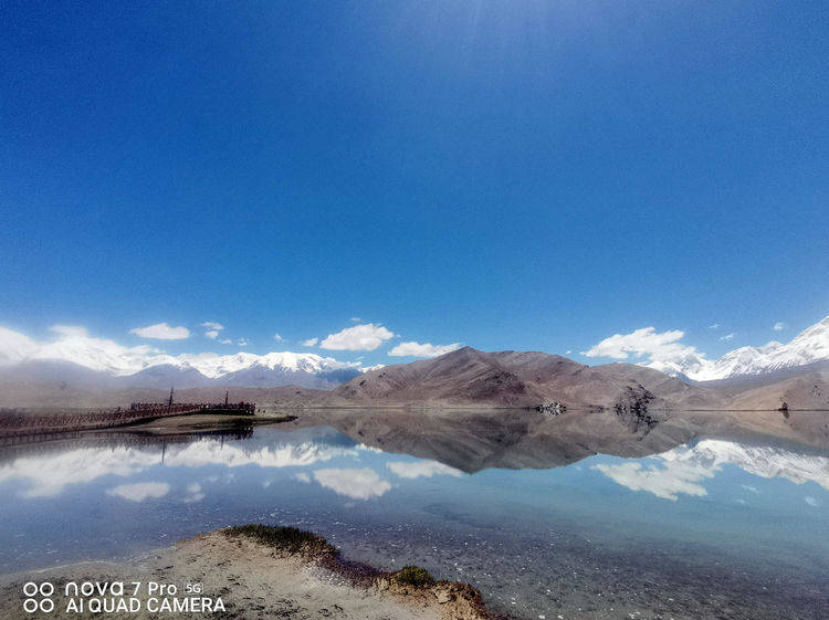 帕米尔高原上最美的湛蓝仙境--白沙湖,白沙飘渺,雪山环绕,被围住的湛蓝时而变墨色,时而变天蓝。劲风不停,波纹不止,偶尔不远处的白沙包散落烟尘,笼罩于湖面之上。这就是我心中最美的湛蓝仙境。