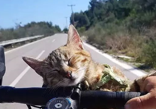 而且骑行路上也并不适合带一只猫,所以他一开始只是想陪陪小猫,喂小猫一点食物。