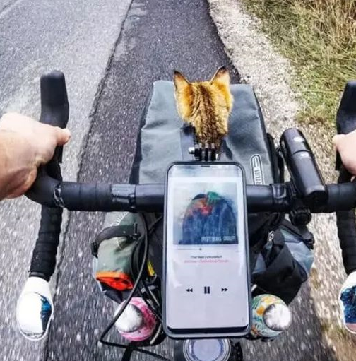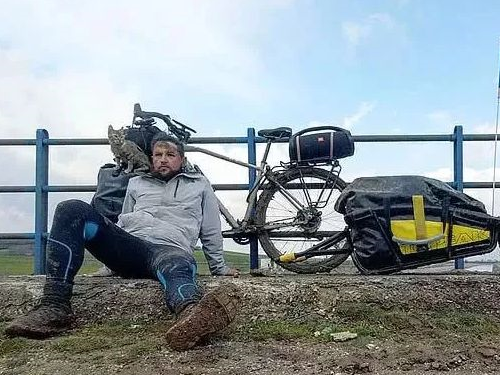 开始时,他心中只想着一个人骑行环游世界。而现在,他更关心猫的健康成长。