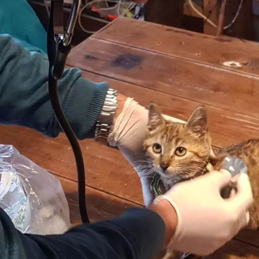 着凉后的小猫生病了,不得不带去医院看病。