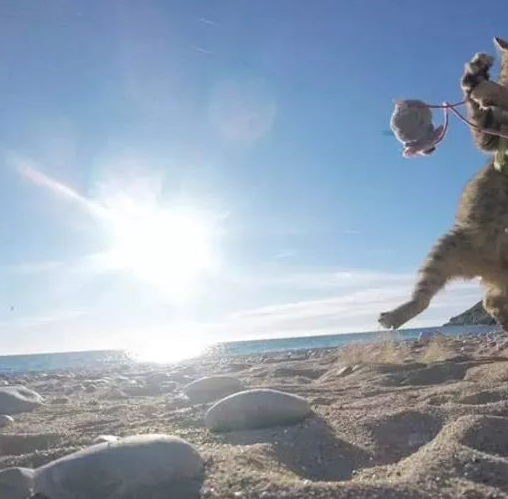 也可以去海滩上,和猫一起玩耍。