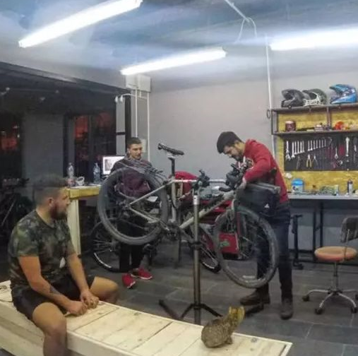 确认身体健康后,他又去修车店改装自行车,为小猫在车头准备一个舒服的空间。