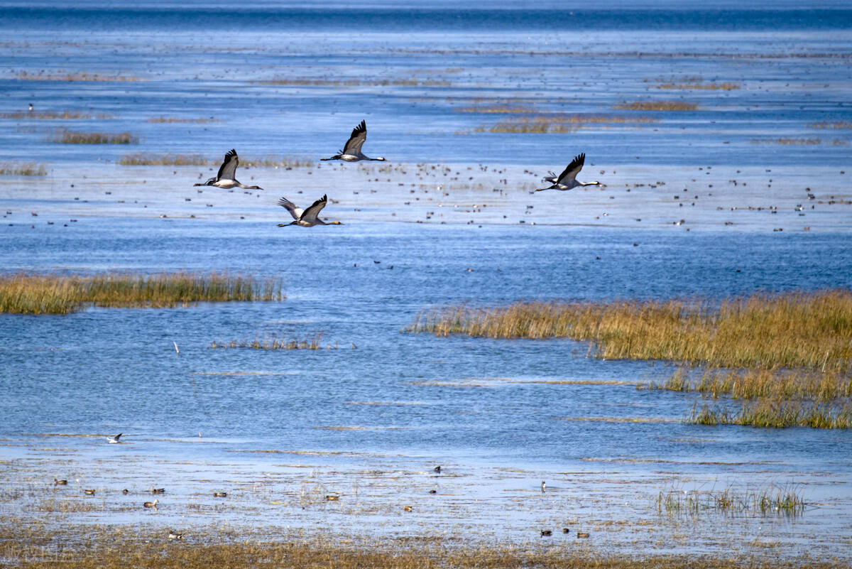 威宁的草海是与滇池、青海湖齐名的贵州第一大湖泊,每年10月到次年3月,超过10万只鸟类迁徙到草海“休养”,其中特别珍贵的有黑颈鹤、灰鹤、丹顶鹤、黄斑苇雉、黑翅长脚鹬和草鹭等,被誉为高原湖泊中的鸟类王国。