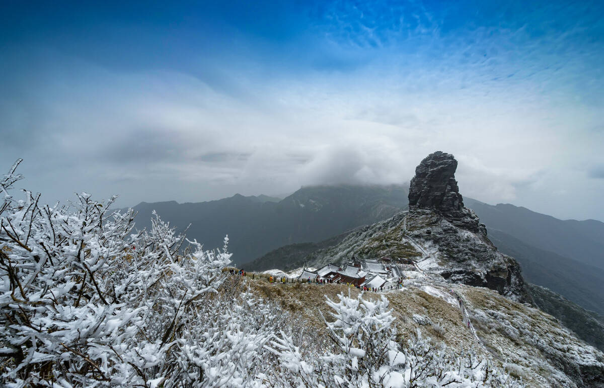 冬日的梵净山云天相融,缥缈悠远,纤尘不染,多了一份宁静,少了一些热闹,这里银装素裹,莹莹冰晶,玉树琼花,宛如童话世界,如果你错过了梵净山色彩斑斓的秋,那你一定不要错过梵净山美如仙境的冬天。