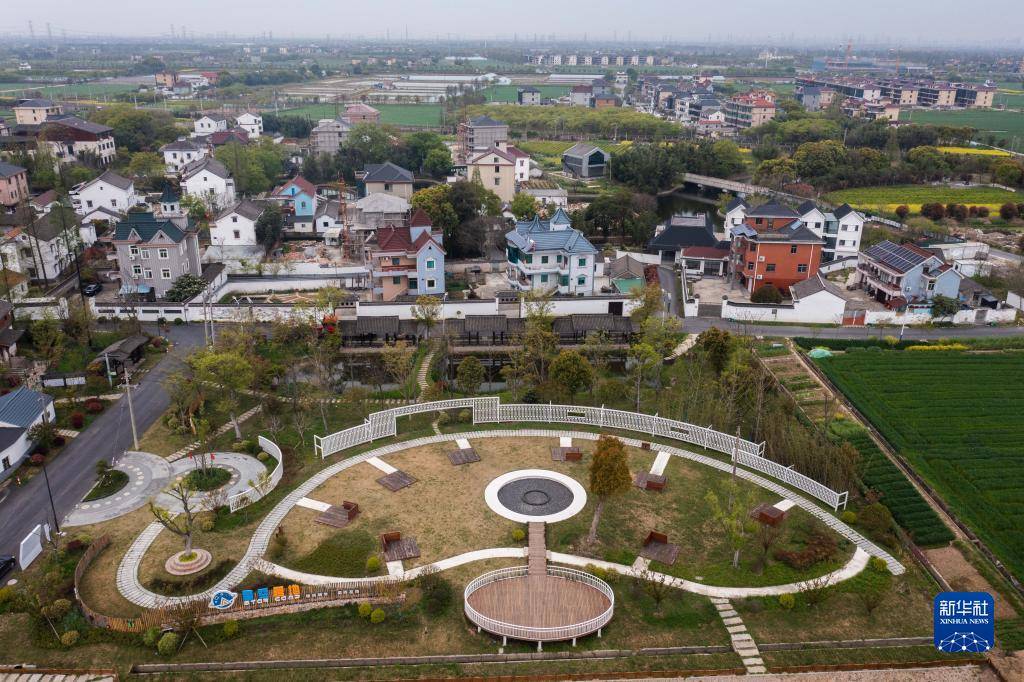 空中俯瞰嘉兴市秀洲区王店镇镇中村(4月3日摄,无人机照片)。近年来,浙江省嘉兴市秀洲区推动“秀水田园”村居图、秀美文旅线路、秀水乡愁点、秀色风景带等乡村景观带的打造,通过“以精品农业为支撑、以乡村旅游为目标”进行产业融合发展,不断提升新时代美丽乡村建设水平,助力乡村旅游和共同富裕示范区建设。截至目前,嘉兴市秀洲区已实现省级美丽乡村示范镇创建全覆盖,建成美丽乡村精品线8条、省级未来乡村3个、特色精品村23个,市级精品示范村12个。新华社记者 徐昱 摄