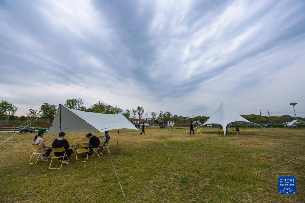 4月3日,游客在嘉兴市秀洲区王店镇南梅村的南梅里营地休闲。近年来,浙江省嘉兴市秀洲区推动“秀水田园”村居图、秀美文旅线路、秀水乡愁点、秀色风景带等乡村景观带的打造,通过“以精品农业为支撑、以乡村旅游为目标”进行产业融合发展,不断提升新时代美丽乡村建设水平,助力乡村旅游和共同富裕示范区建设。截至目前,嘉兴市秀洲区已实现省级美丽乡村示范镇创建全覆盖,建成美丽乡村精品线8条、省级未来乡村3个、特色精品村23个,市级精品示范村12个。新华社记者 徐昱 摄