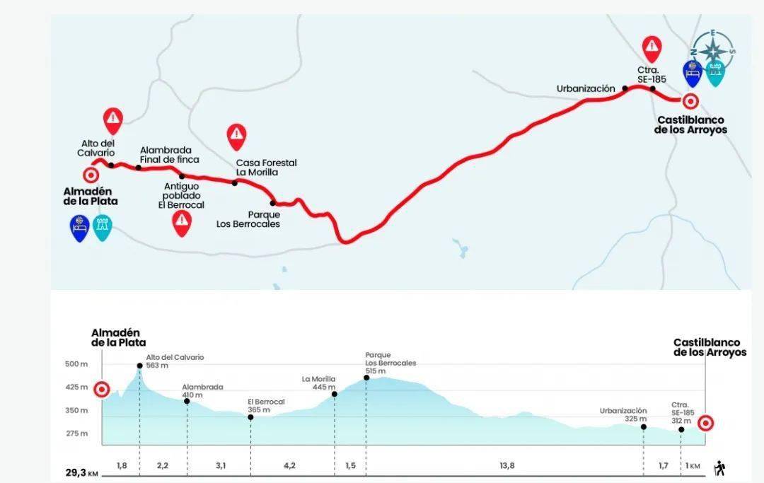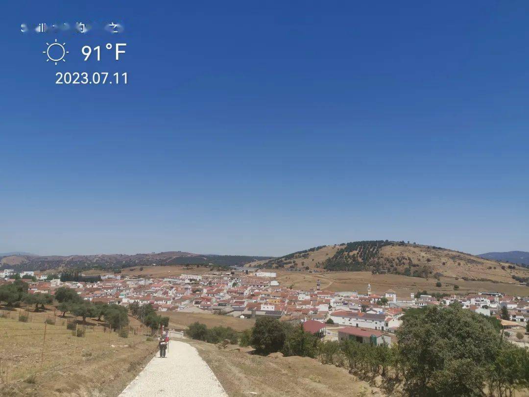 下午2点多,登上最后一个高坡,出现一个山凹中的小镇Almaden de la Plata