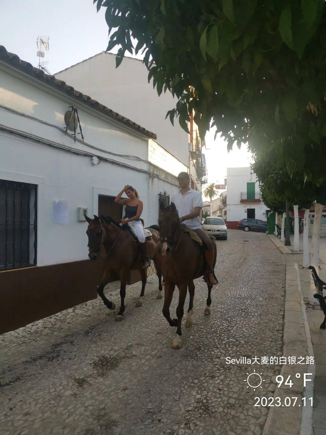 聊天时,石板路上马蹄声声,过来一对骑马的青年男女,悠悠闲闲,马俊人也漂亮,都不是那种胖子。