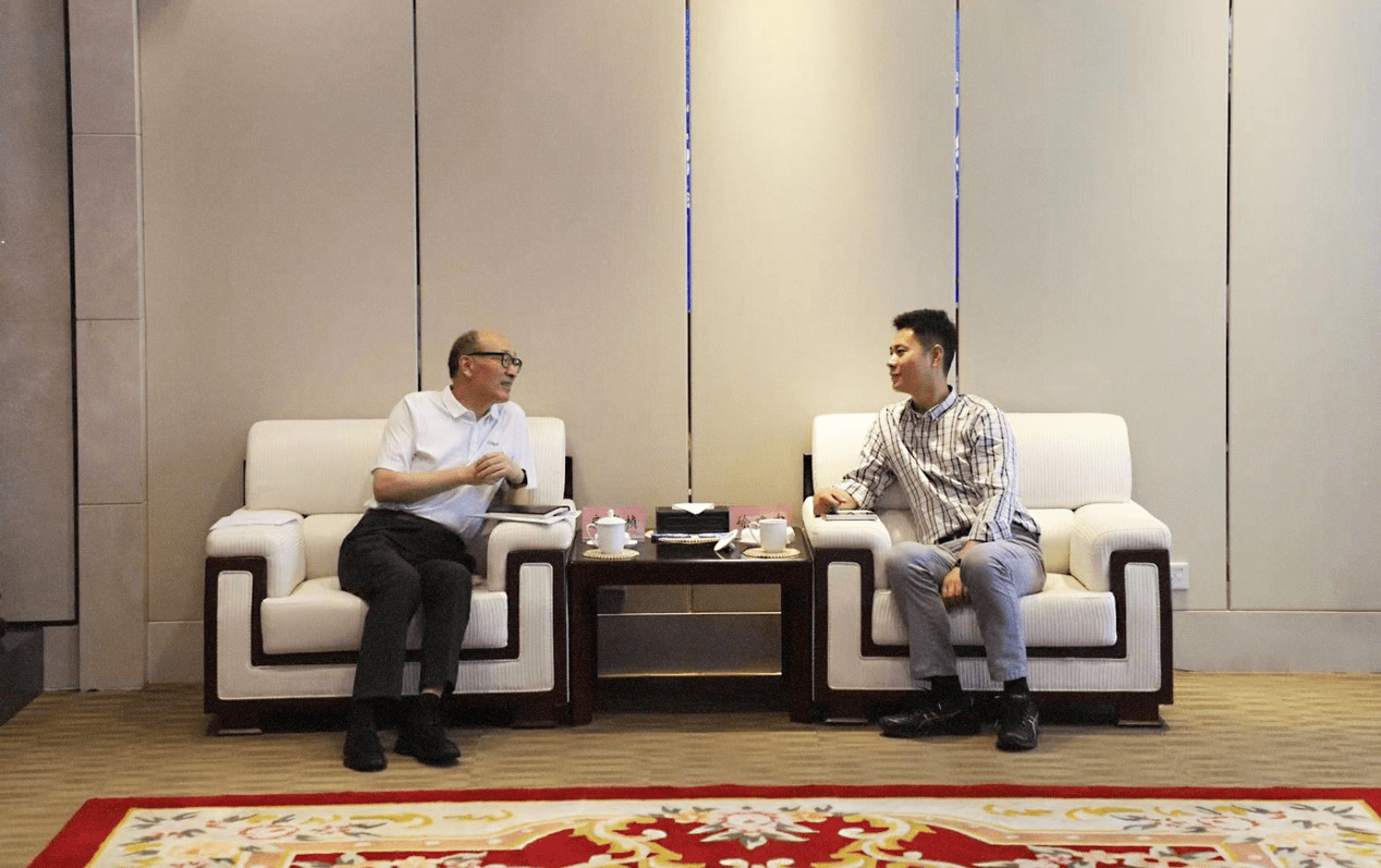 同程旅行高级副总裁、出行事业群CEO徐建中(右)与河南机场集团董事长康省桢会谈(左)