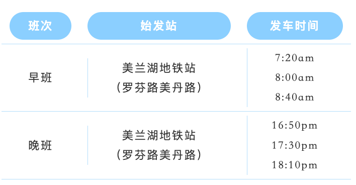 班车运行时间:周一至周五(法定工作日)